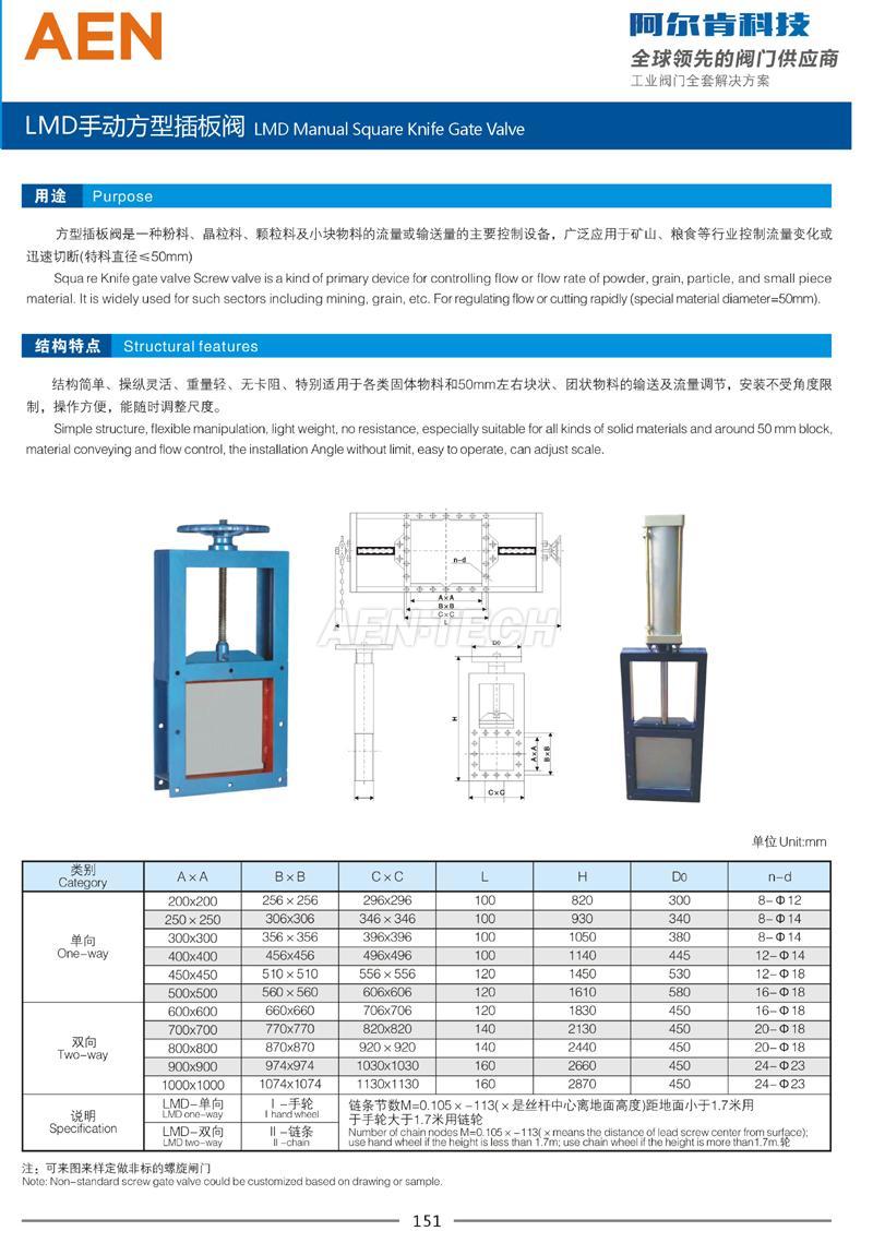 手动方型插板阀LMD