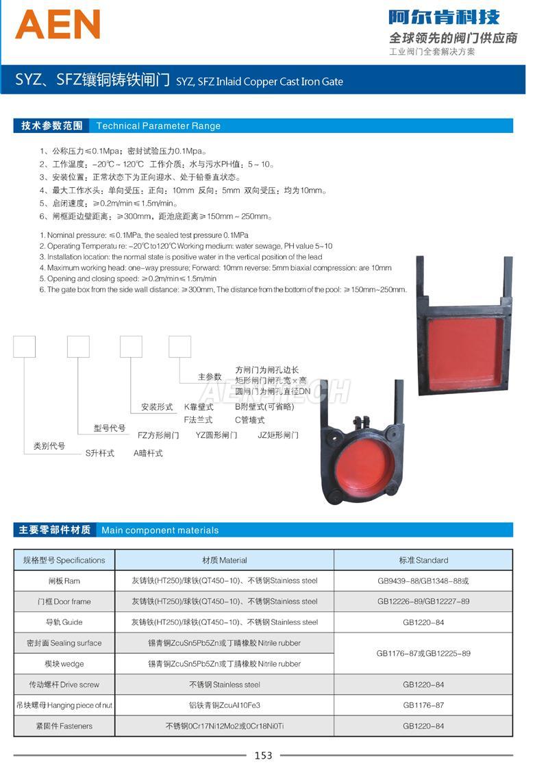 镶铜铸铁闸门SYZ/SFZ